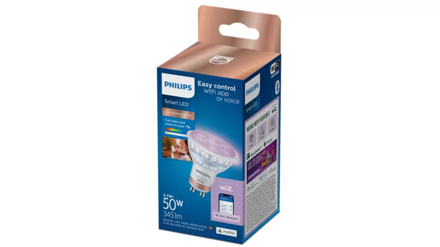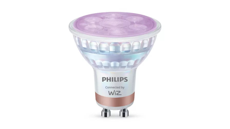 These smart spots have the standard GU10 shape that you know and love, but their real glass lenses bring an extra touch of elegance. And they offer you something that’s anything but standard: tunable white light for all your needs and moods. Schedule cool white light when you need to get things done, or cozy warm white light when you want to kick back and relax—whatever lets you live your best, most comfortable home life. All this plus control via your voice, the WiZ remote, or the WiZ app whether you’re home or away. Philips Smart GU10 spots connect using your existing Wi-Fi, no there’s no additional hardware, networking, or setup required.